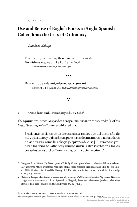 Pdf Ana Saez Hidalgo Use And Reuse Of English Books In Anglo Spanish Collections The Crux Of Orthodoxy In Exile Diplomacy And Texts Exchanges Between Iberia And The British Isles 1500 1767 Leiden The Netherlands